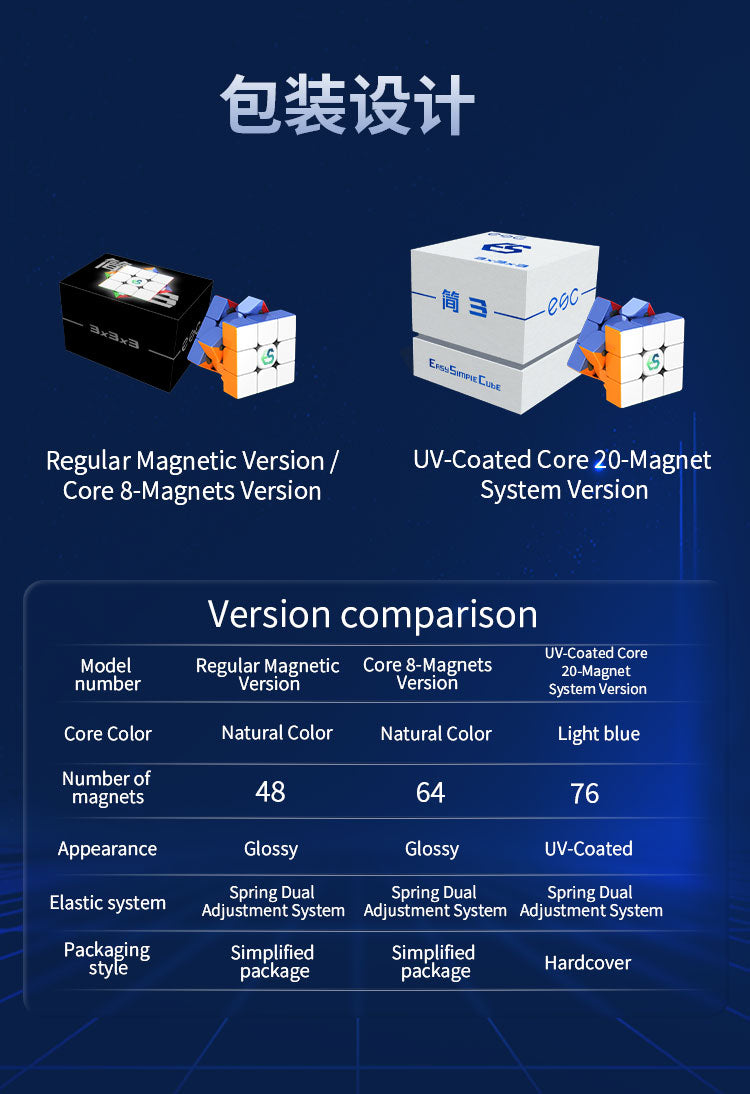 ES3 3x3 (Magnetic, 20-Core Magnets, UV Coated) is the debut release for the new brand, ES Cube! This speed cube focuses on easy-to-use adjustments and a simple yet effective design.