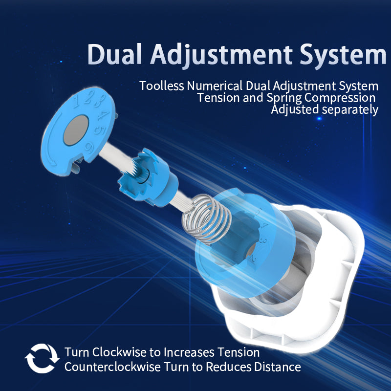 - Dual-adjustment core for independent spring compression & tension