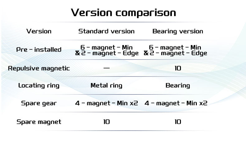 | Standard Version | No | Magnetic positioning + adjustable magnet configurations | Smooth, low-resistance gears with precise control | Central magnetic ring for secure magnet retention | 10 spare magnets | High-precision performance with durable, consistent feel |
