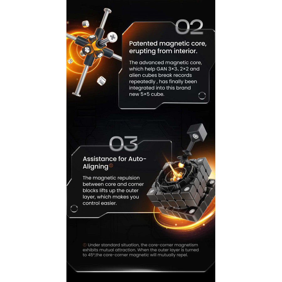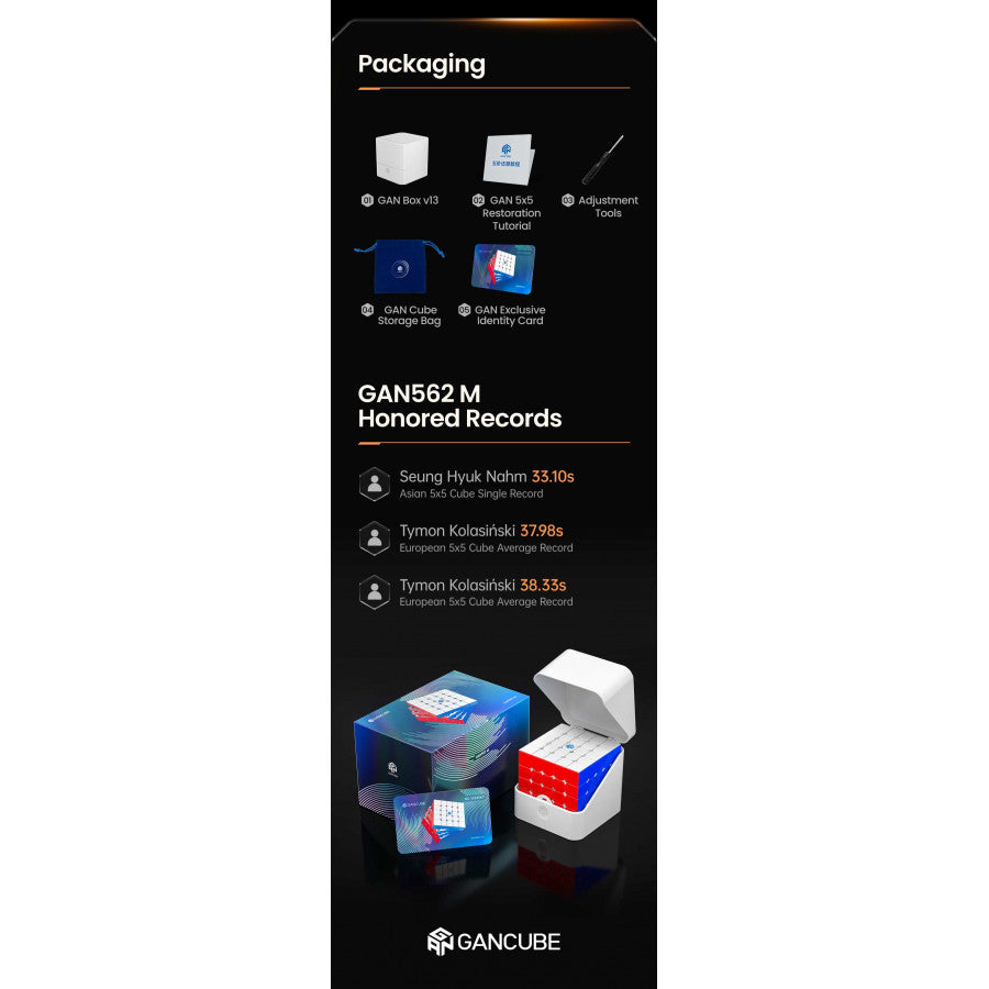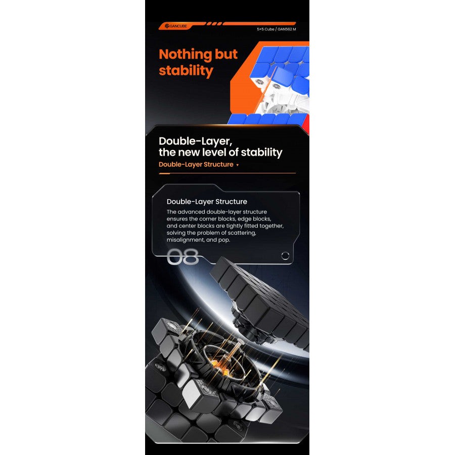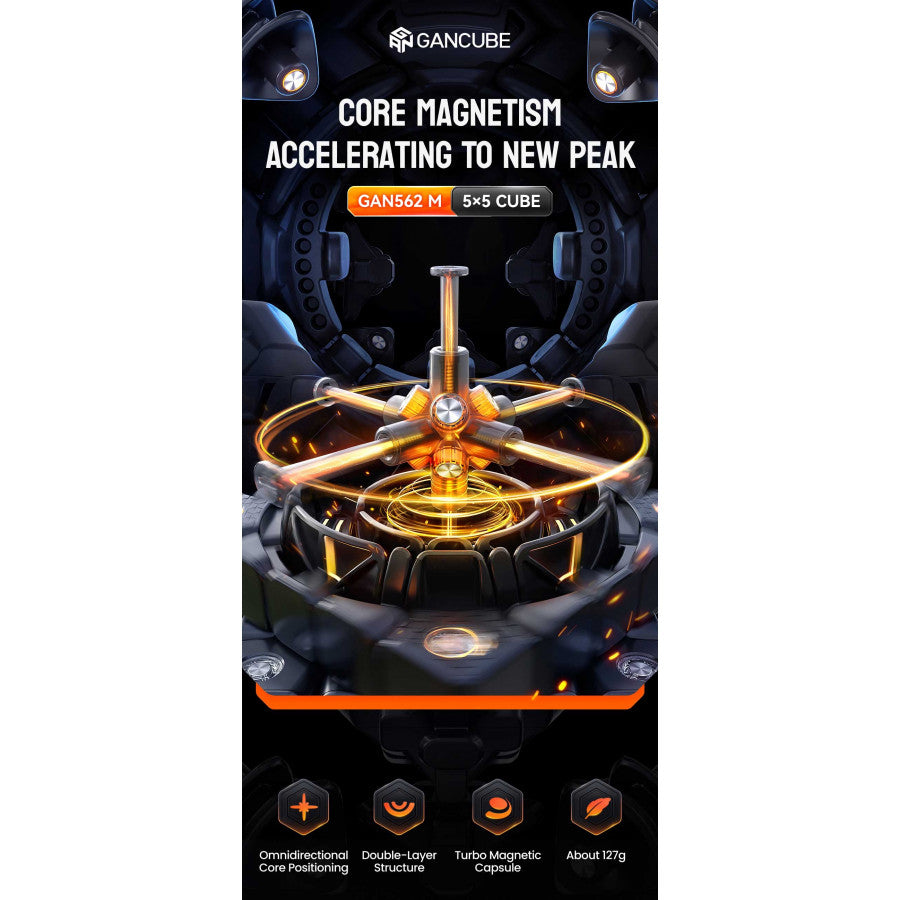 GAN 562 5x5 Magnetic Ball-Core adopts technology previously found exclusively in GAN 2x2 and 3x3, making this a top choice for speedcubers.
