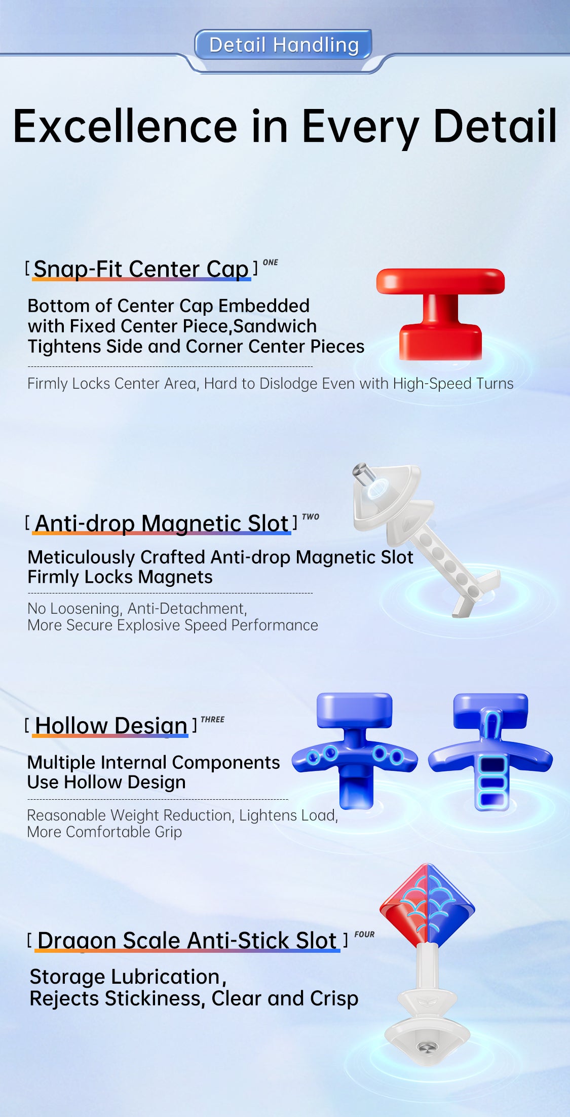 - Magnetic core corner/core magnets for a better, more controllable turning feel