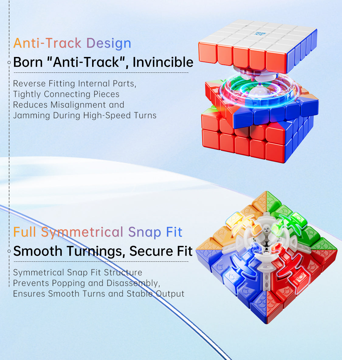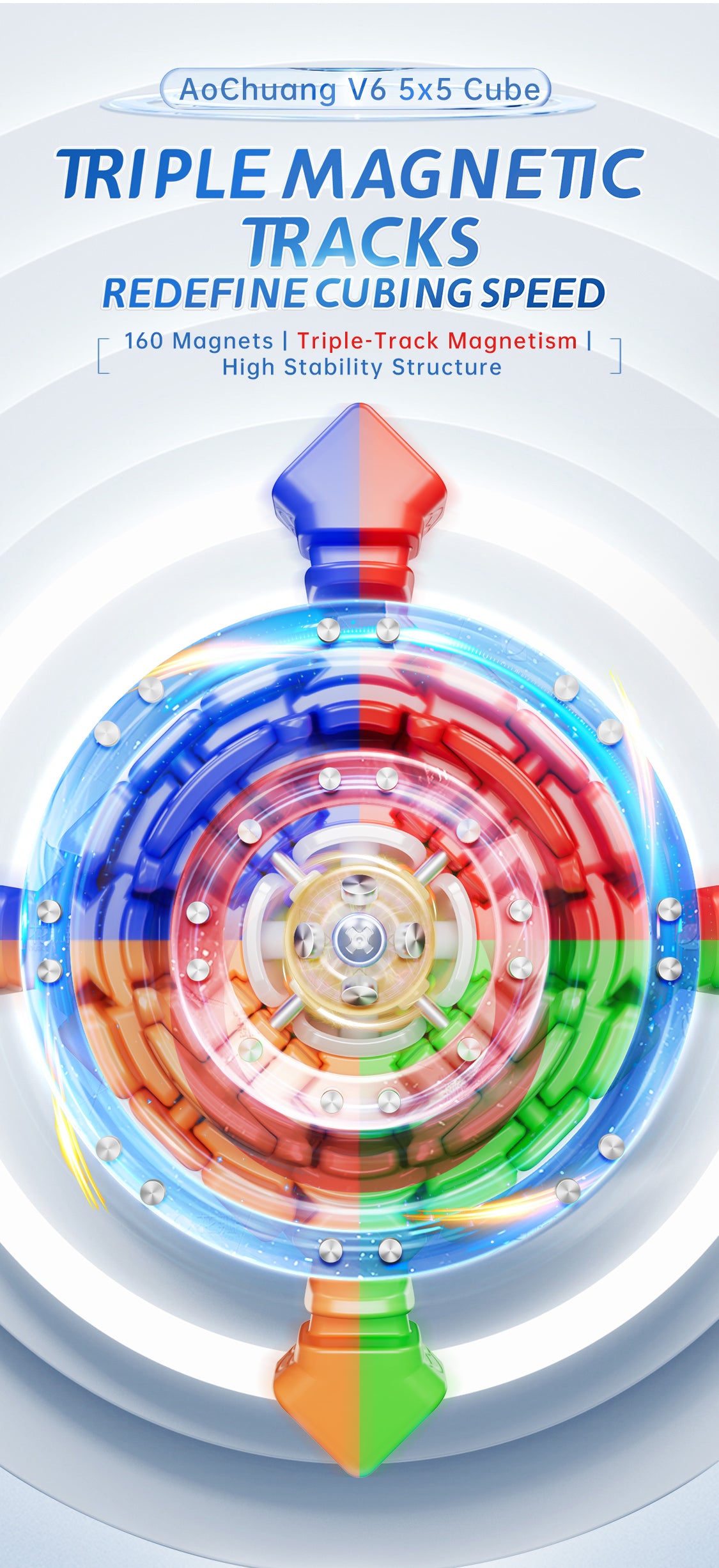 MoYu AoChuang V6 5x5 Magnetic (Triple-Track UV Coated) packs a punch with 160 factory-installed magnets, a compact size (60.5mm), a ball-core, and other mechanism improvements.
