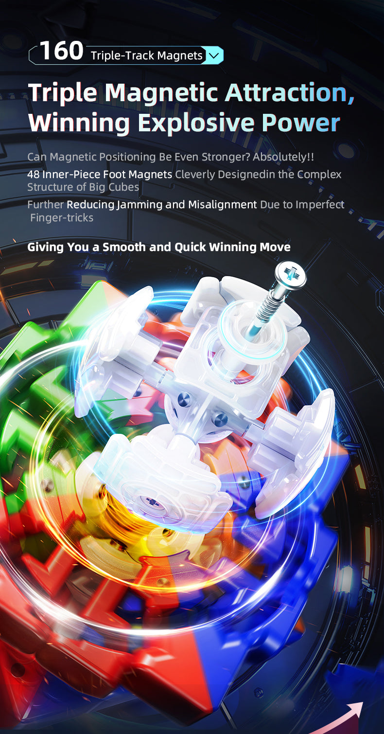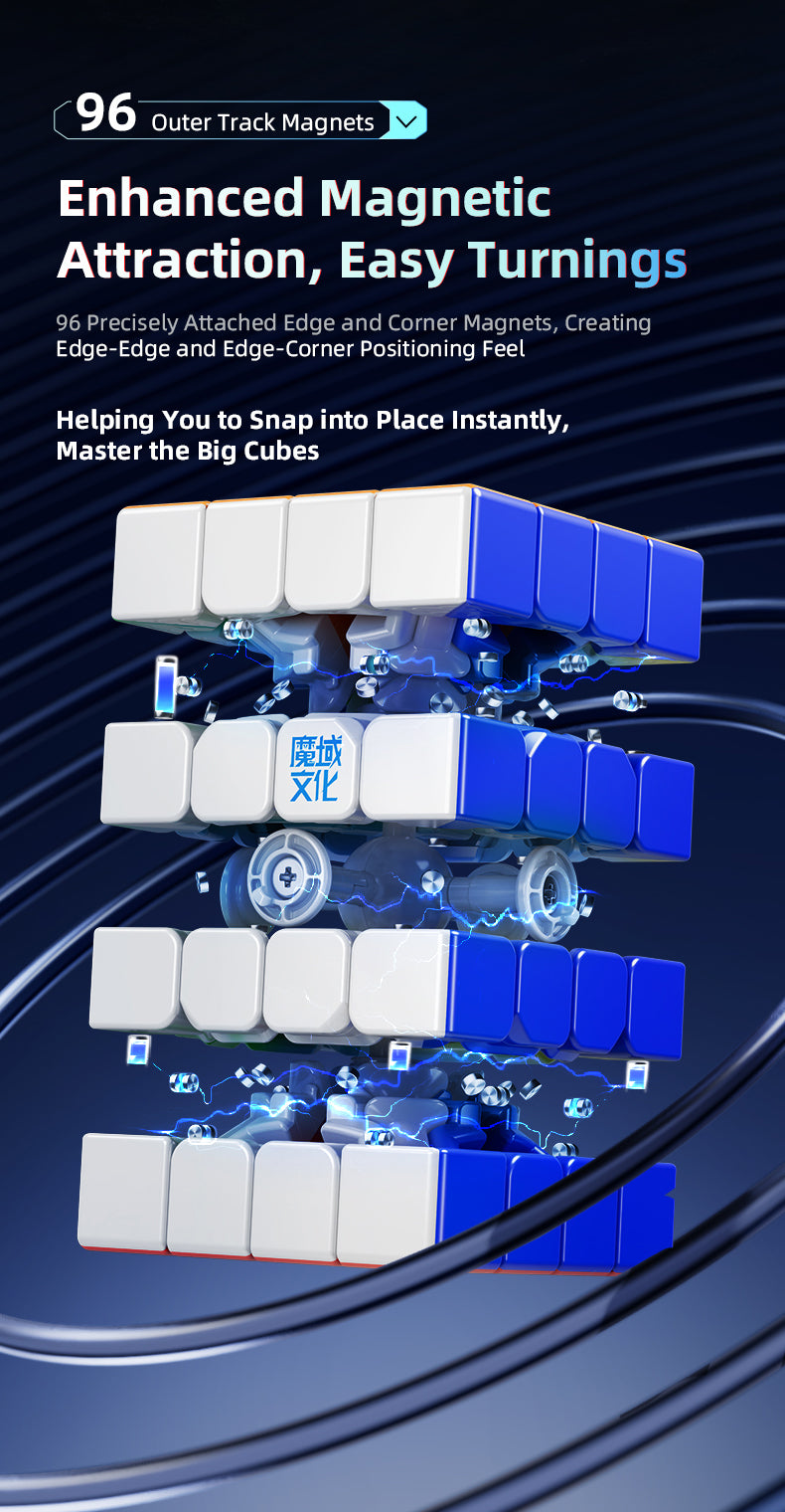 MoYu AoSu V7 4x4 Magnetic (Triple-Track UV Coated) packs a punch with 160 factory-installed magnets, a compact size (58mm), a ball-core, and other mechanism improvements!