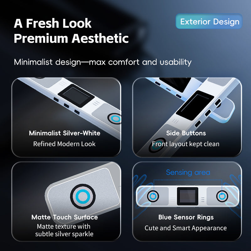 Comfortable, non-slip surface with subtle silver glitter detailing and blue sensor rings. -