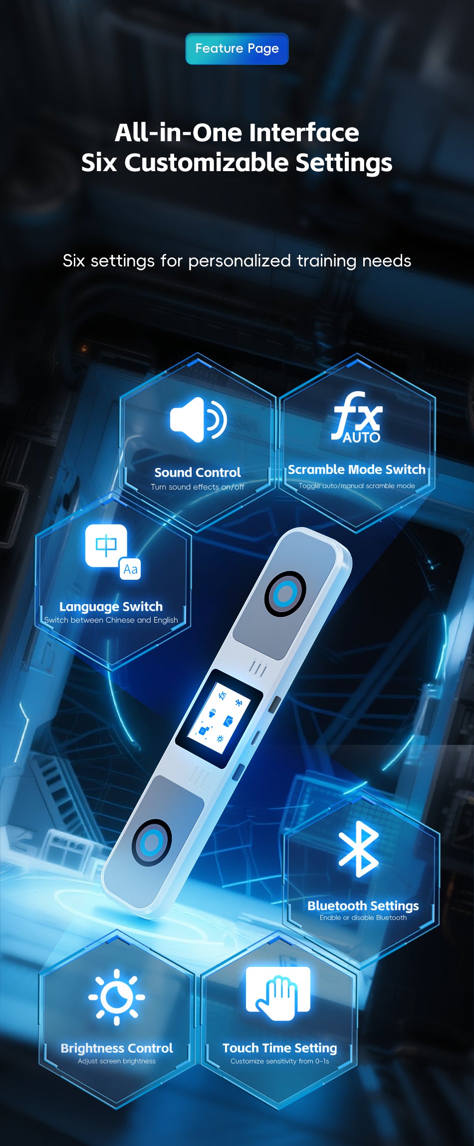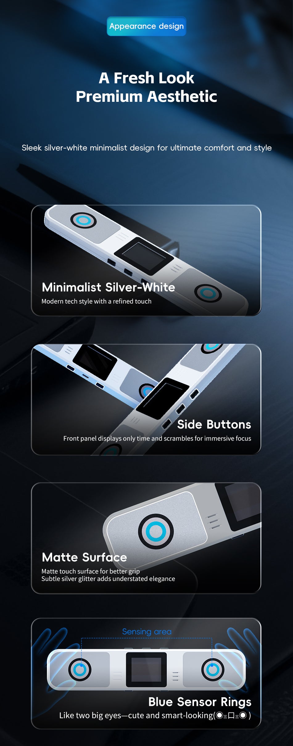 Reduces accidental presses and keeps the front panel focused on time and scrambles. -