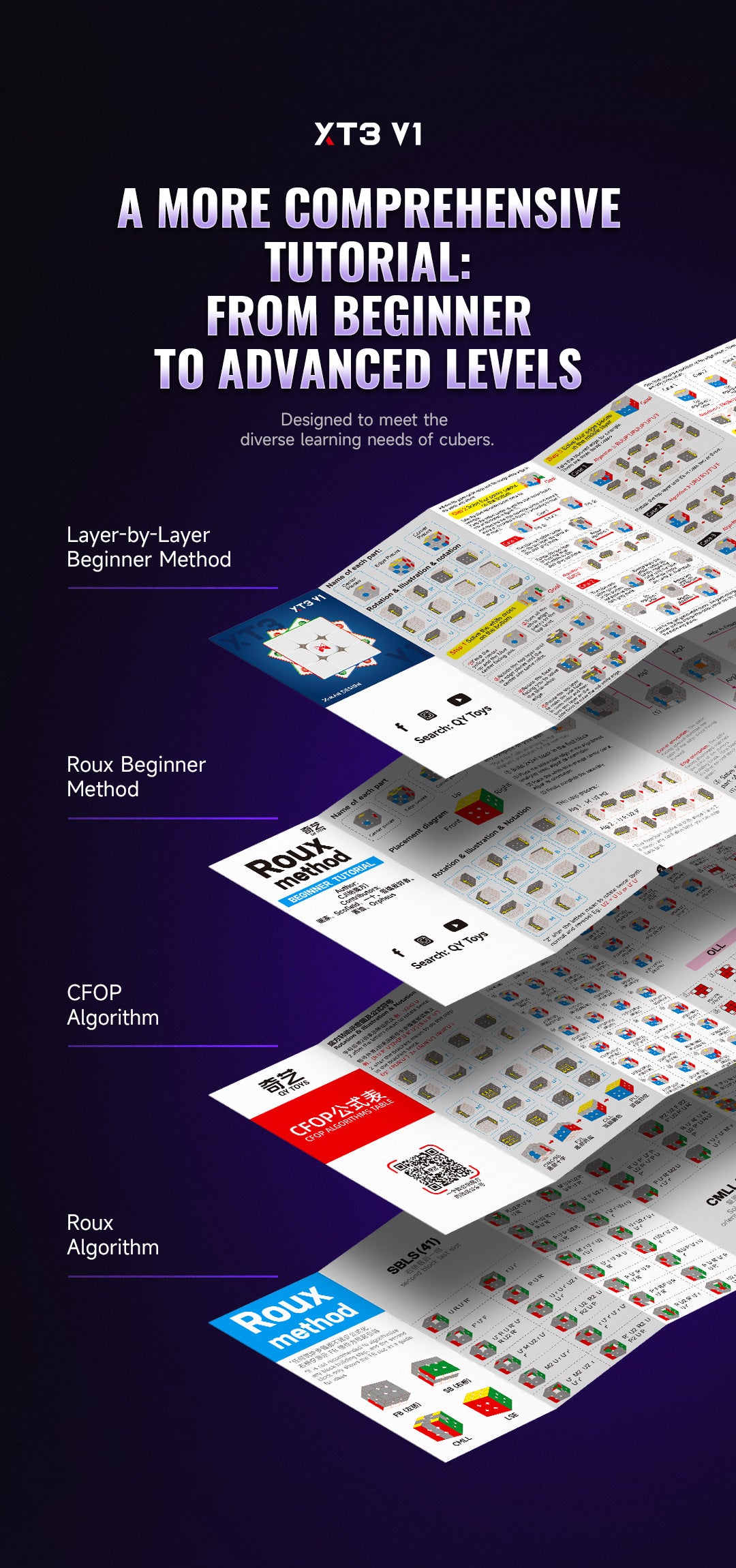 - Tutorial guides (CFOP, Roux, Beginner)